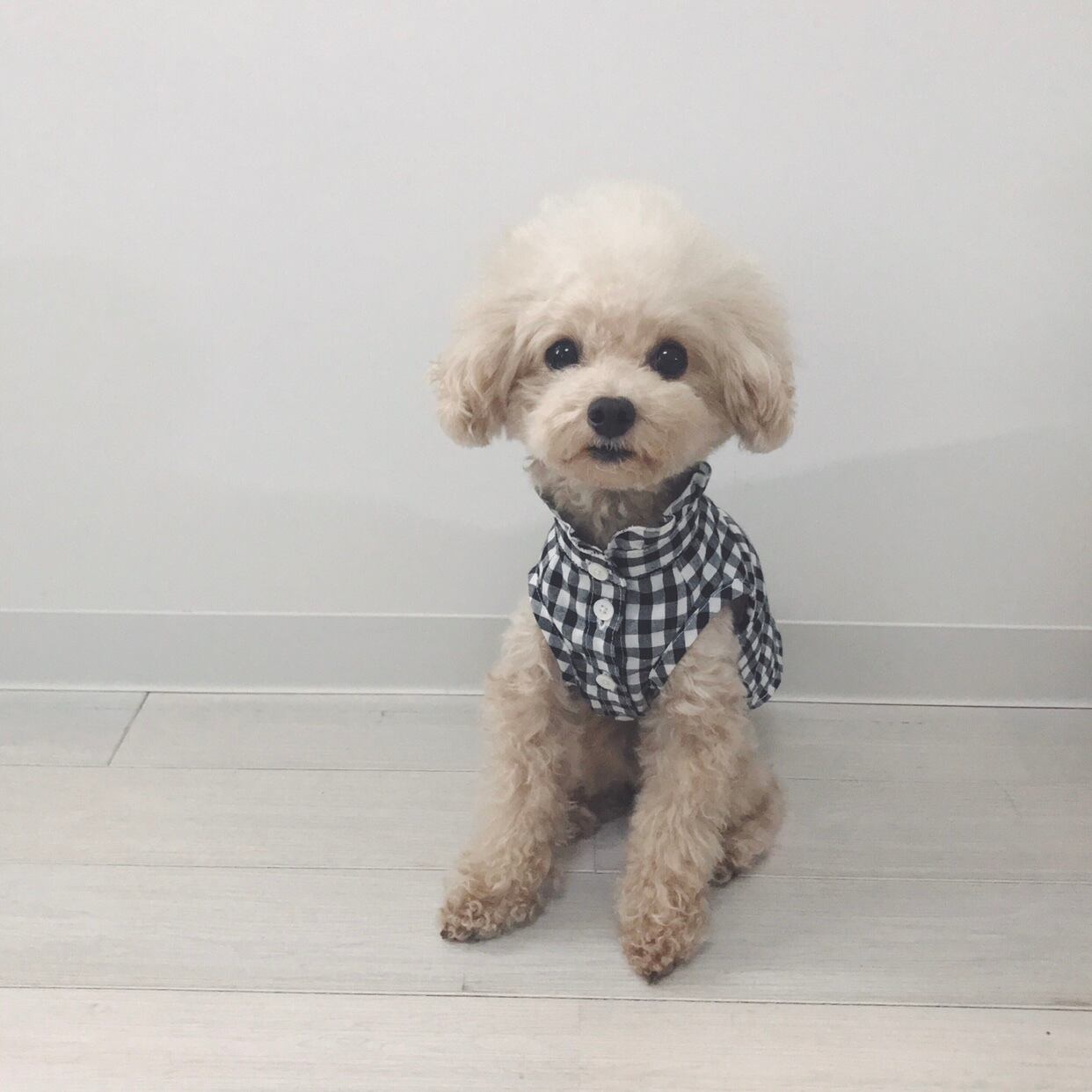 *写真のわんこは首周り18.5cm、胴周り31cmでSSサイズを着用しています。
