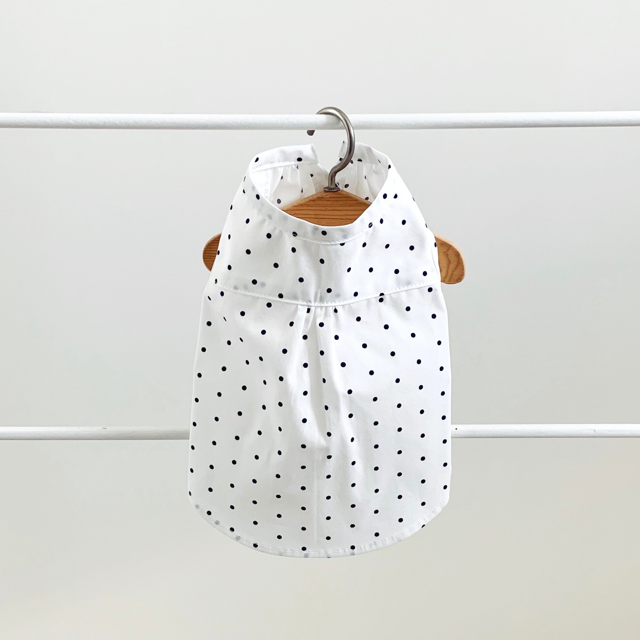 かわいらしいドット柄ですが、衿元はスキッパーのようなすっきりしたデザインで甘さを抑えています。