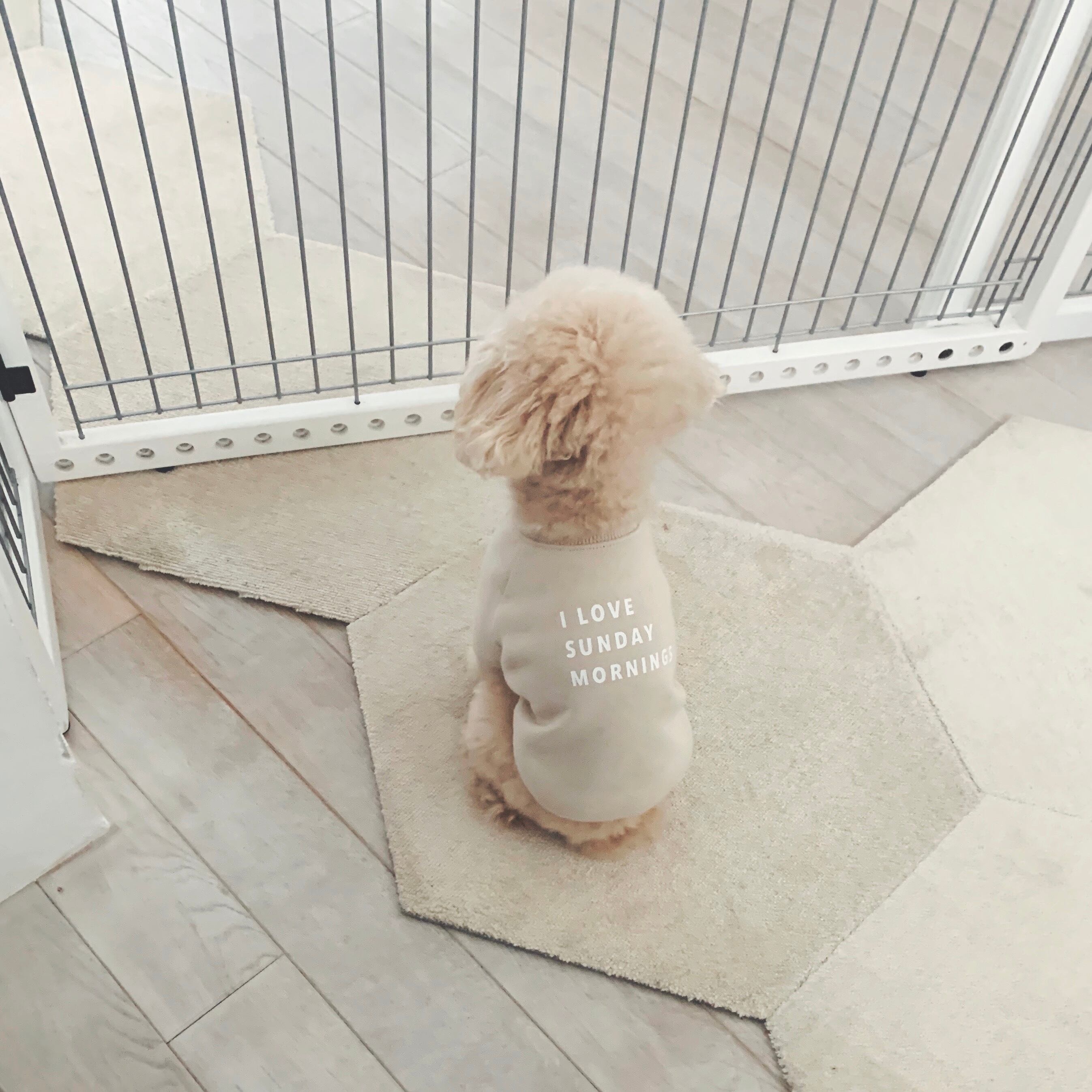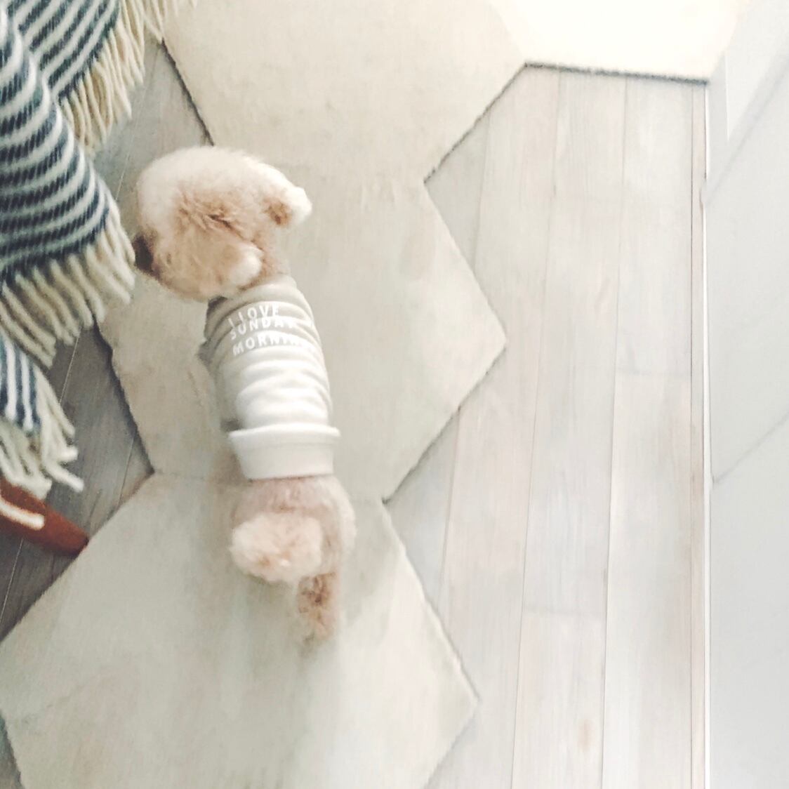 写真のわんこは、首周り19㎝、胴周り31㎝で、SS(−)のものを着用しています。