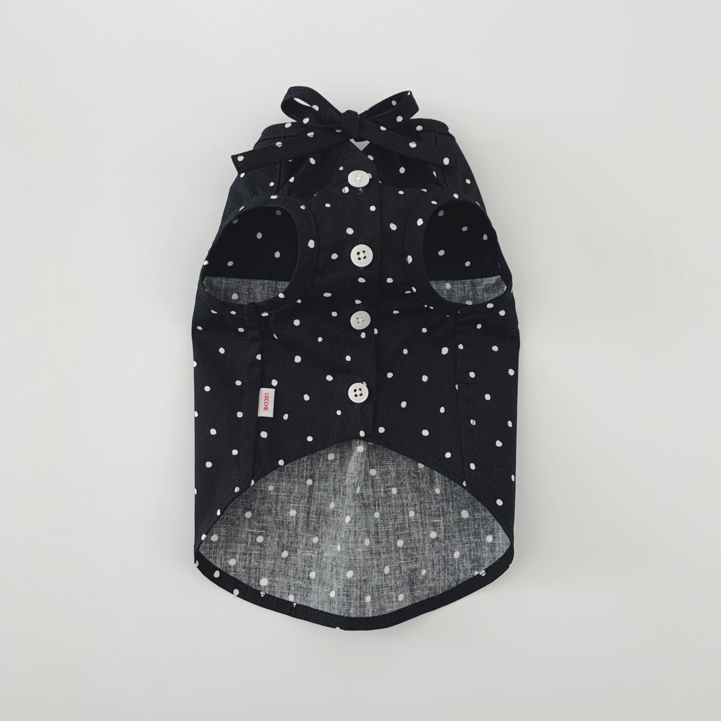 ランダムなドットがかわいい、しっかりと張りのあるコットン地のブラウス。