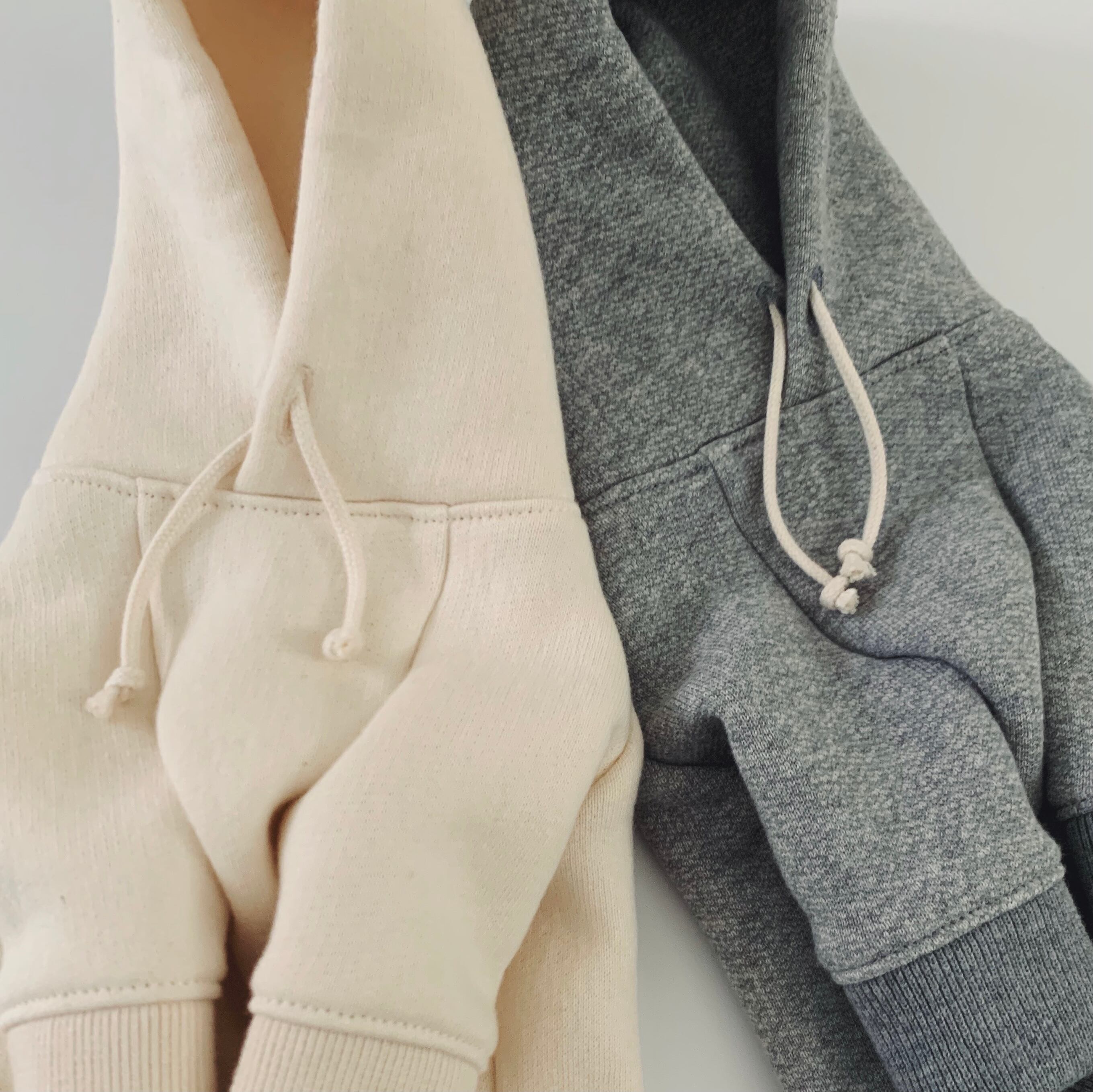 **グレーは縦にスジや、染むらのように見えるもの(商品写真をご参照ください。)が入っている場合がございますが、天然のコットン裏起毛特有の「味」だとご理解ください。気にされる場合はご購入をよくご検討くださいませ。