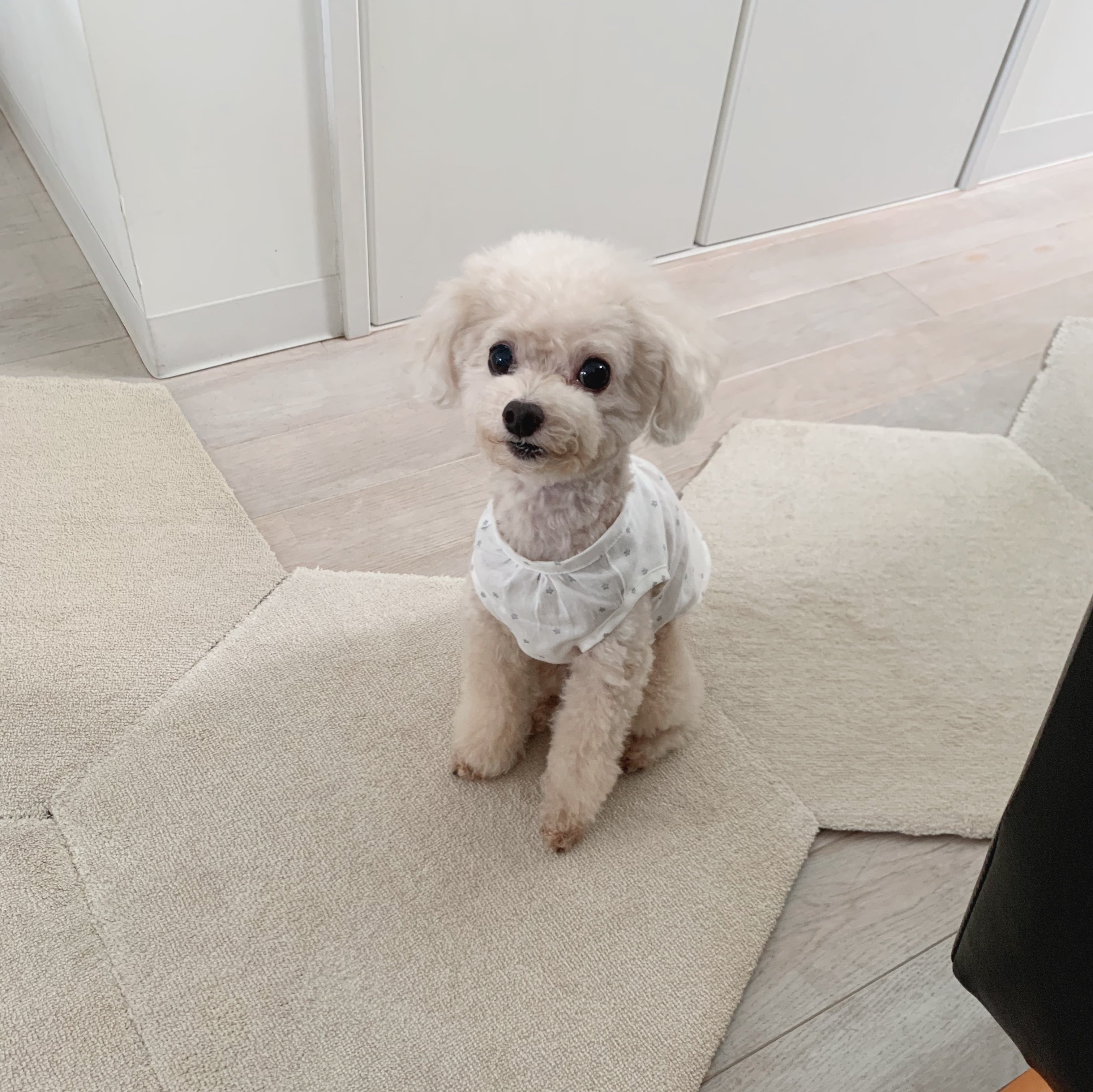*モデルのトイプードルは首周り19cm、胴まわり31cmでSSサイズを着用しています。