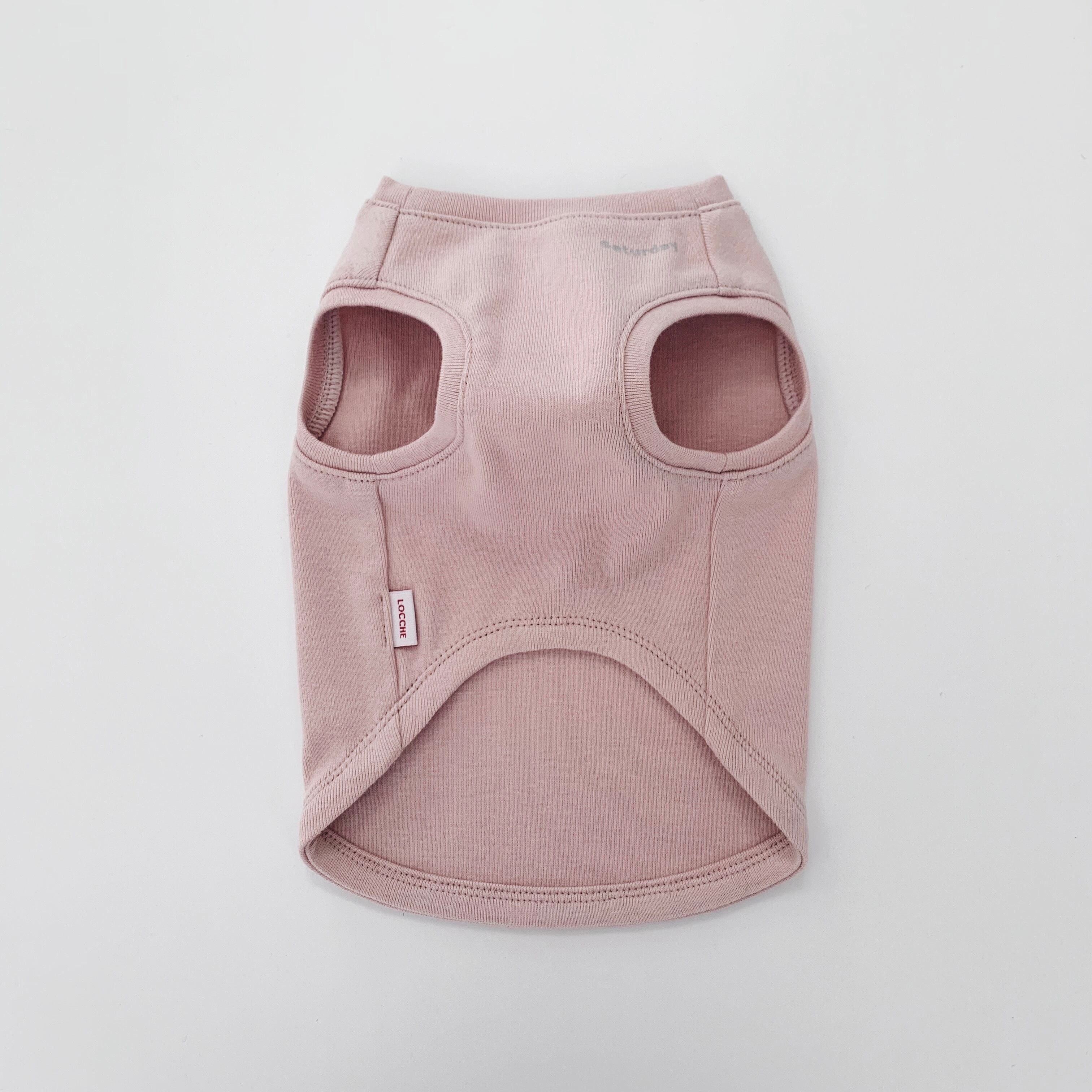 優しい印象の少しニュアンスのあるピンク地にライトグレーのロゴ。