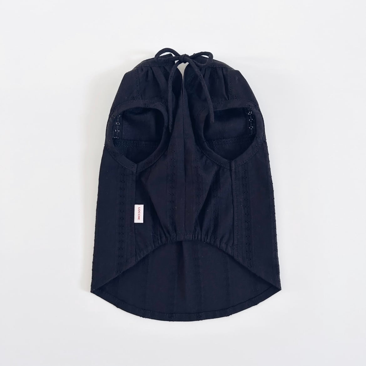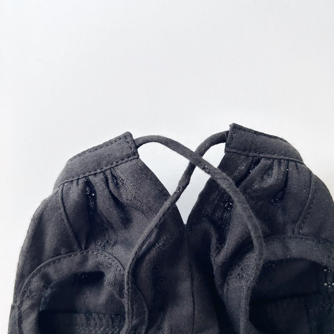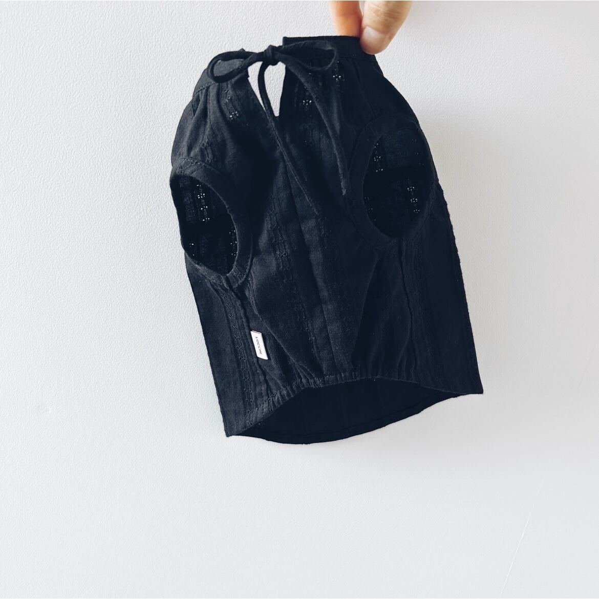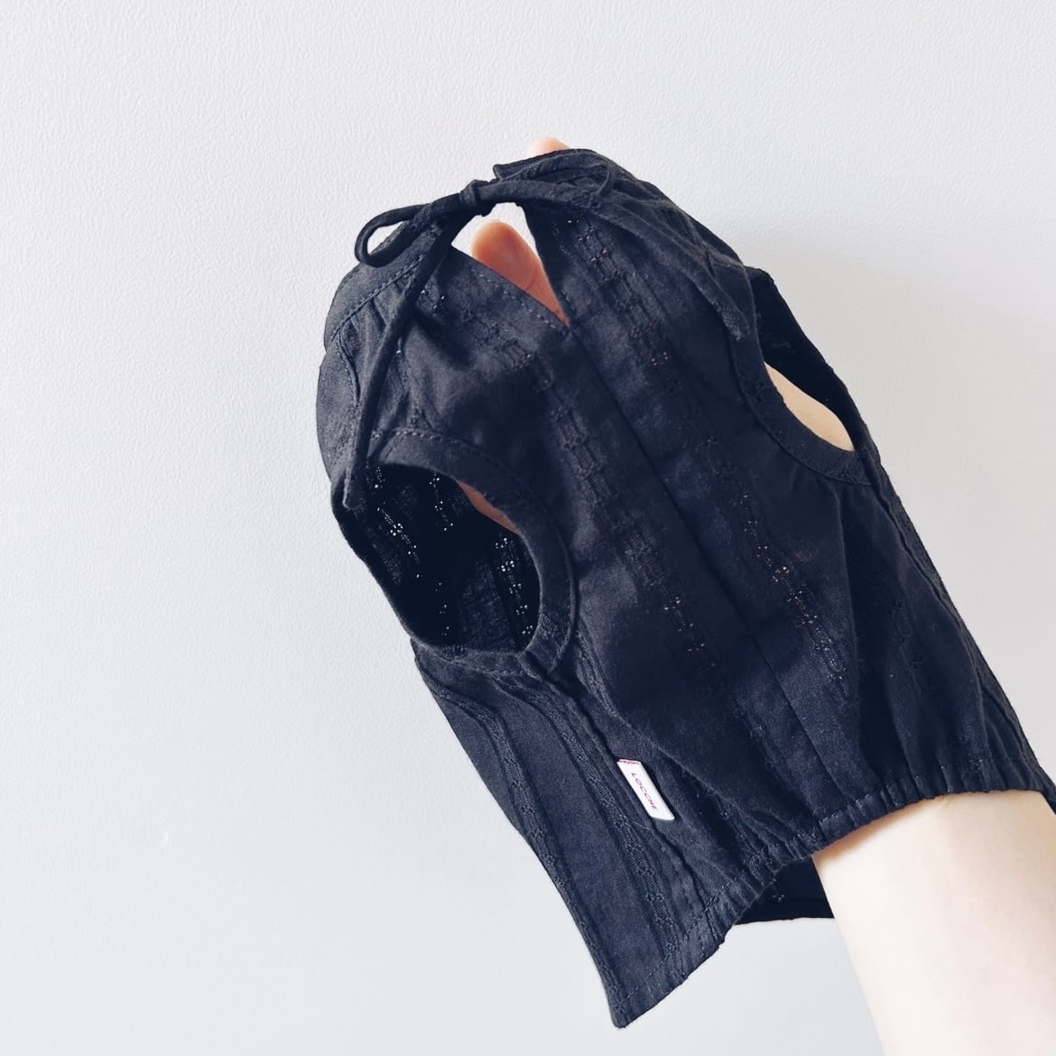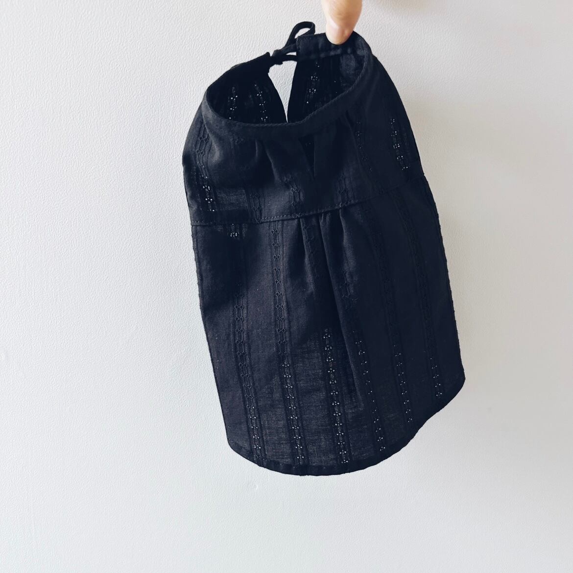 黒ですがレースっぽい織り方が涼しげで通気性もあるので春から秋口頃まで長く着ていただけます。